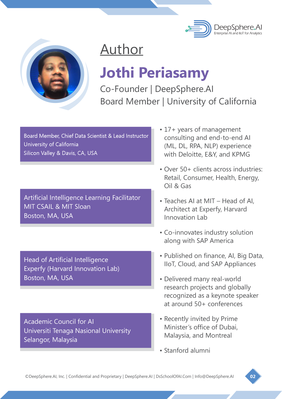 Jothi is a globally recognized chief data scientist, and Jothi developed a professional data analytics program for the University of California, Davis. Jothi trained more than ten thousand individuals in the field of data science and data analytics. Jothi's data science program is very industry-driven than academic concepts and scientific research.